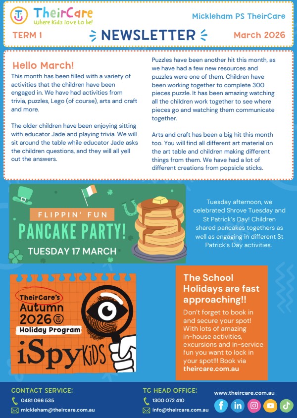 This term seems to have gone past so quickly! Our new Prep children have settled into their school lives very smoothly – which their parents saw today during their Celebration of Learning. Over this term we have also welcomed many new children and their families to our school community. We want to remind you that Terms 1 – 3 end at 1:30pm on the last day of term (today) and Term 4 at 12:30pm.
